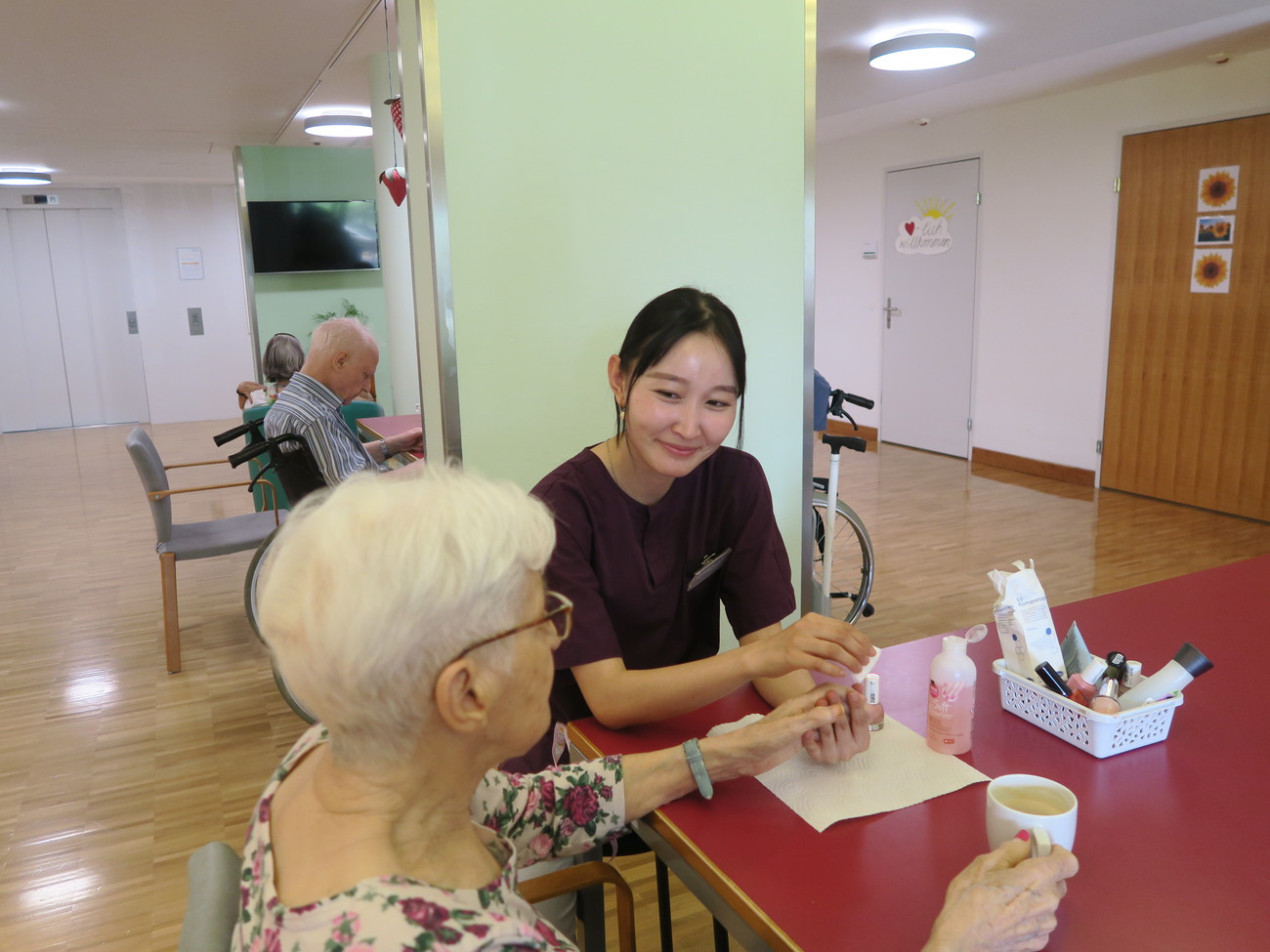 Auf den Beruf aufmerksam geworden bin ich durch die Schule und nach der Schnupperlehre war klar, dass ich die Ausbildung im Seniorenzentrum Mülimatt machen möchte, weil ich mich hier sehr wohl gefühlt habe.